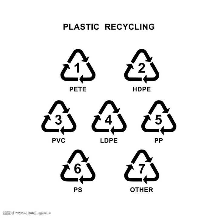 如圖所示,它由一個三角形符號和一個數(shù)字組成,每一個數(shù)字代表一種塑料容器。它的功能主要是方便公眾辨別塑料類型并對它進(jìn)行回收分類。而美國人挑選出來的這幾種塑料進(jìn)行編號,主要是因為它們大多應(yīng)用在我們生活常常接觸到的食品、日用品當(dāng)中。具體想了解這幾類的區(qū)別,百度百科已經(jīng)整理得很清楚。